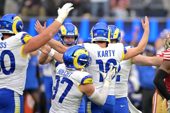 Joshua Karty hit a 37-yard field goal with two seconds remaining and the Los Angeles Rams pulled off an improbable 27-24 victory over the San Francisco 49ers in Inglewood, Calif., on Sunday by scoring 13 points in the final 6:15.