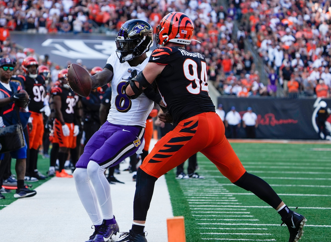 Lamar Jackson threw four touchdown passes and led a comeback from a 10-point, fourth-quarter deficit on Sunday as the visiting Baltimore Ravens rallied for a 41-38 overtime win over the Cincinnati Bengals.