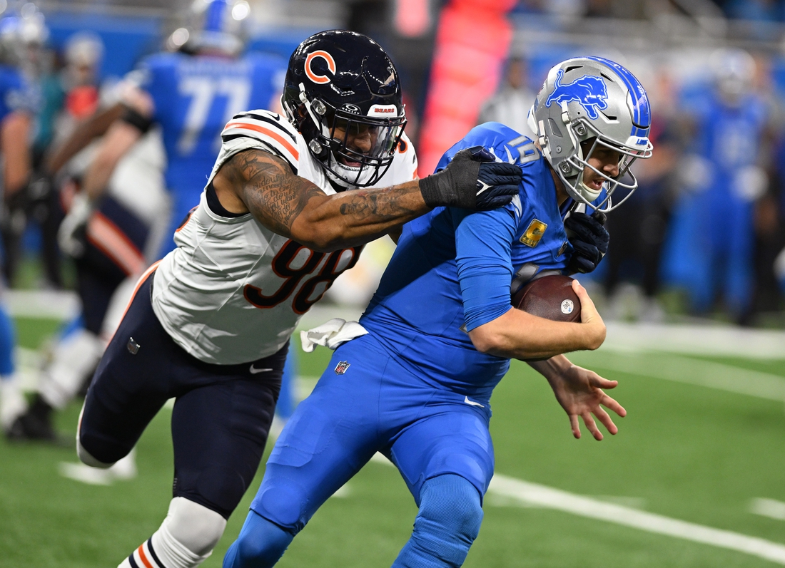With a nine-game winning streak and 2-0 record in the division, the Lions are no easy prey for the Bears in the first game of the holiday tripleheader on Thursday. Chicago lost another game in walkoff fashion, 30-27 to the Vikings in overtime, their third such defeat in a five-game losing streak to deflate a feel-good 4-2 start. Signs of growth are evident for Bears rookie No. 1 pick Caleb Williams. Facing Minnesota’s notably blitz-happy defense, Williams guided the Bears to 17 points in the fourth quarter to force OT. He had his third 300-yard game of the season and hasn’t thrown an interception during the ongoing five-game skid. A lasting pain point since the Bears tasted victory at London in Week 6 is execution on third downs converting 21 of 73 since the bye week. With the short and fruitless drives becoming habitual, Chicago has seen improvement with Thomas Brown calling plays the past two games, although there are signs of a weary defense late in games. No time for a breather at Ford Field. The Lions are all-gas, no-brakes with 10 total touchdowns the past eight quarters. The Bears have 12 touchdowns in their past six games. Old friend David Montgomery faces his former Bears’ teammates and is doing his part to put points up for the Lions with 11 rushing TDs in 11 games. Lions WR Amon-Ra St. Brown has more touchdowns (nine) than all Bears wide receivers combined (eight). Chicago’s defense picked off Jared Goff five times in two games last season. He has 20 touchdown passes — one TD catch — and seven games with multiple TD passes in 2024. In recent games, the Bears’ defense is getting scorched. Chicago has surrendered a league-worst 1,977 total yards since Week 8.