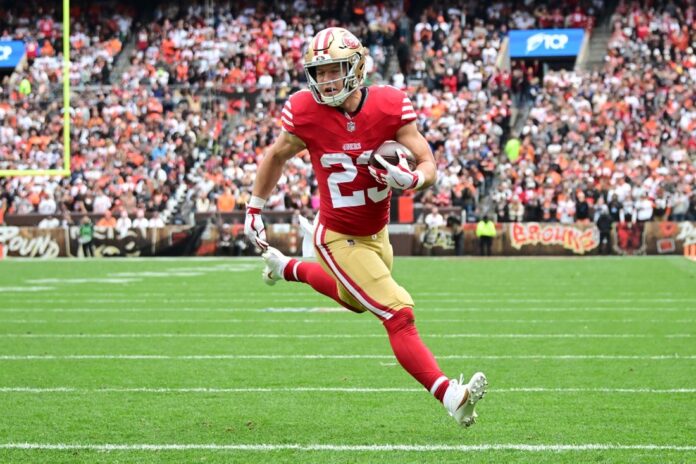San Francisco 49ers star running back Christian McCaffrey, listed as questionable with an oblique injury, is expected to play in Monday night’s game against the Minnesota Vikings, NFL Network reported.