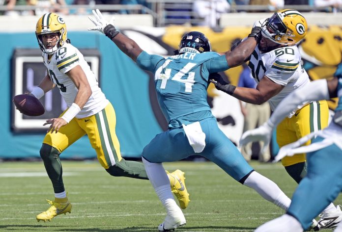 Green Bay was without Love at Wednesday’s session as well as running back Josh Jacobs (ankle), cornerback Jaire Alexander (knee) and three starting offensive linemen in left tackle Rasheed Walker (knee), left guard Elgton Jenkins (glute) and center Josh Myers (wrist).