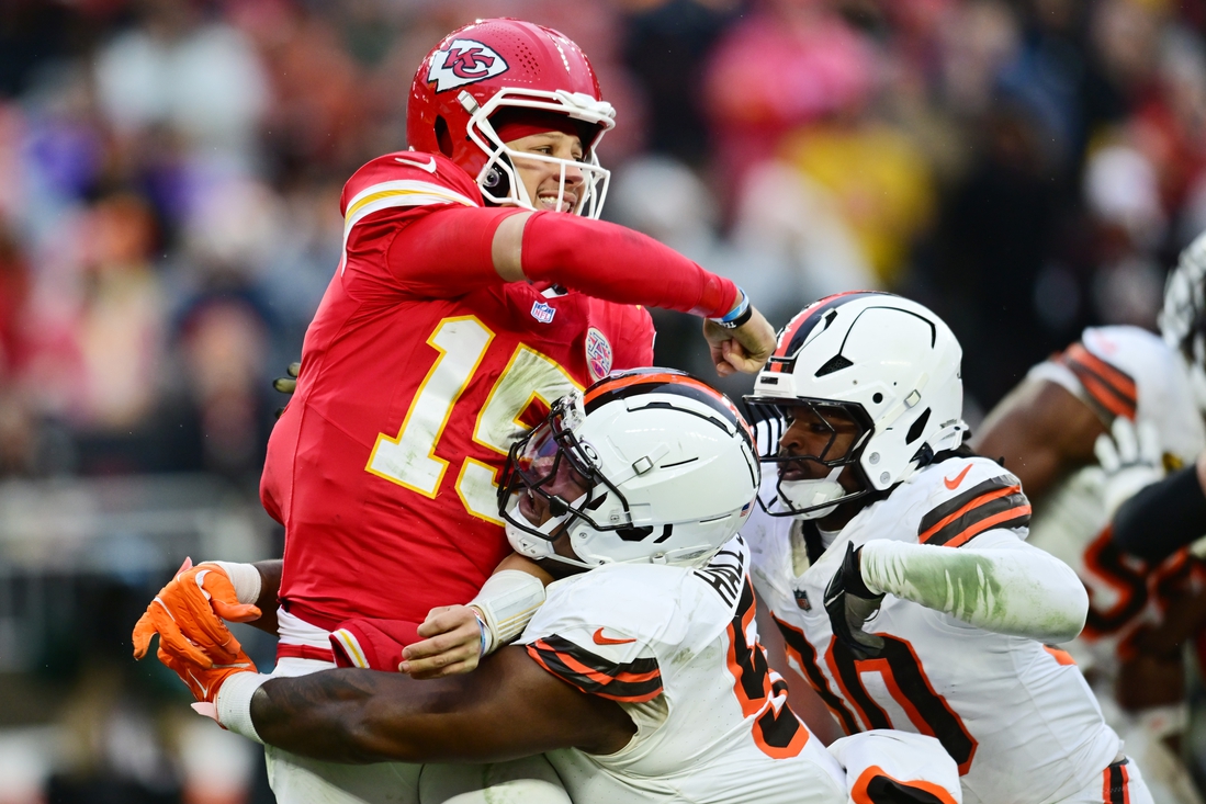 Mahomes got caught up under Cleveland defensive tackle Dalvin Tomlinson after firing an incompletion with 7:57 left in the game. He hobbled off the field and had his ankle taped on the sideline before Kansas City said he was questionable to return.