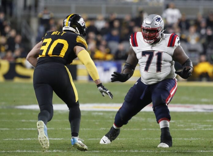 Patriots personnel director Eliot Wolf said at the NFL Scouting Combine that Onwenu was “someone we view as a cornerstone for us,” after moving from guard to right tackle in 2023.