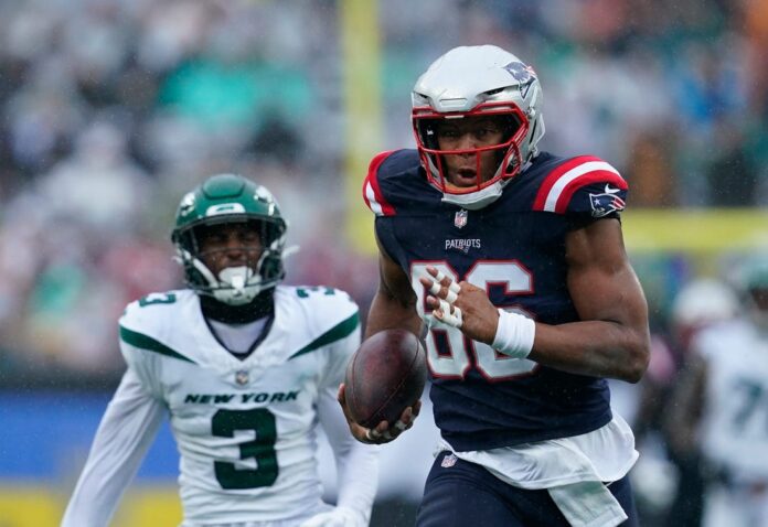 The Patriots made it 10-0 when Jones hit uncovered tight end Pharaoh Brown over the top after a play-action fake with 10:38 left in the half. Brown chugged 58 yards to the end zone for his first touchdown since 2020 with the Houston Texans.