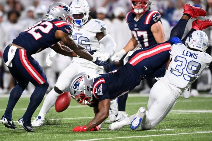 Gibson appeared to injure the knee just before Cam Lewis of the Bills crashed into him. Gibson fumbled the ball and teammate TreVeyon Henderson recovered at the New England 28-yard line.