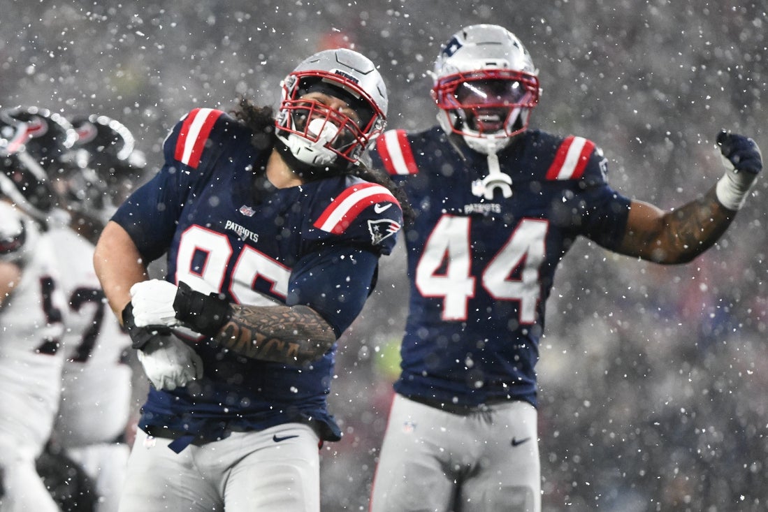 The Patriots intercepted Houston’s C.J. Stroud four times and had five takeaways on Sunday. One week earlier, New England sacked Justin Herbert six times in a 16-3 home win over the Chargers in the wild-card round.