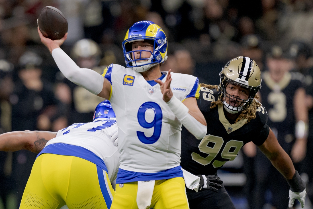 Matthew Stafford threw two touchdown passes, Kyren Williams ran for a score and the visiting Los Angeles Rams held off the New Orleans Saints 21-14 on Sunday.