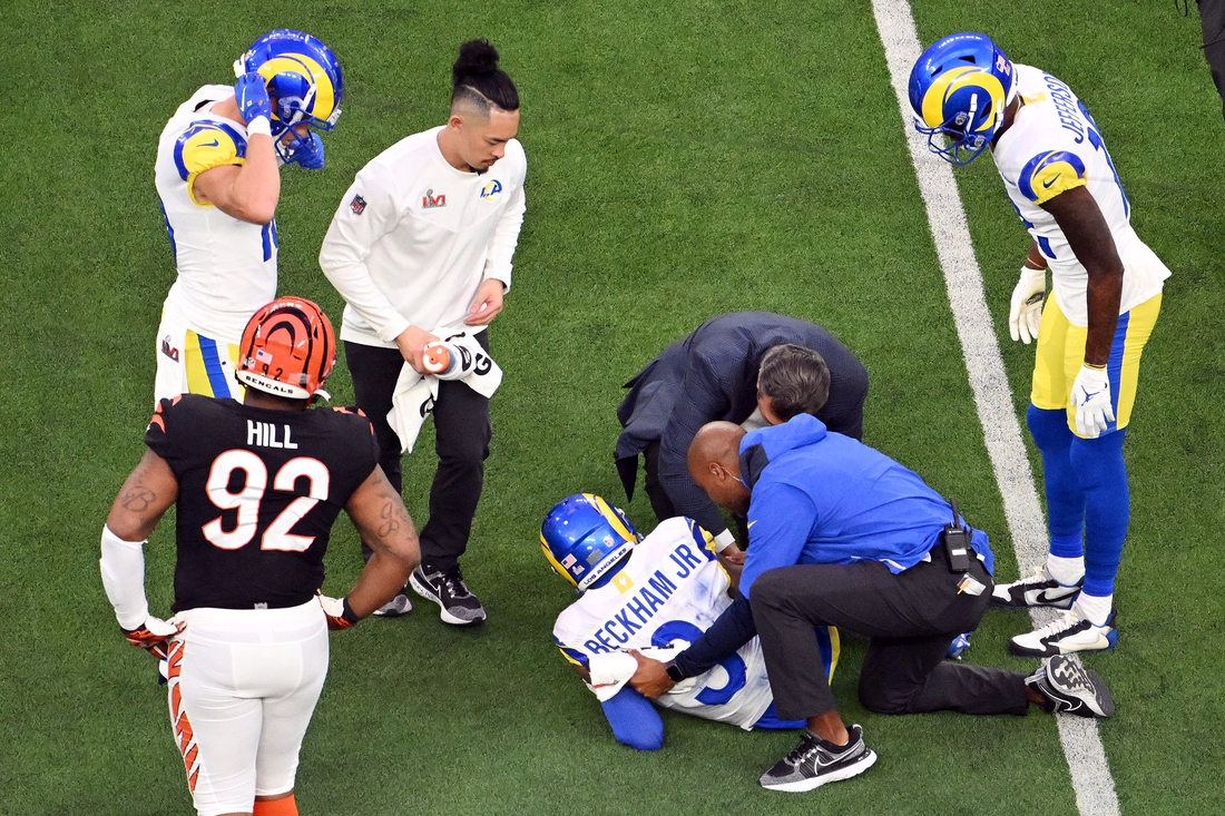NFL: Rams WR Odell Beckham Jr. (knee) exits Super Bowl