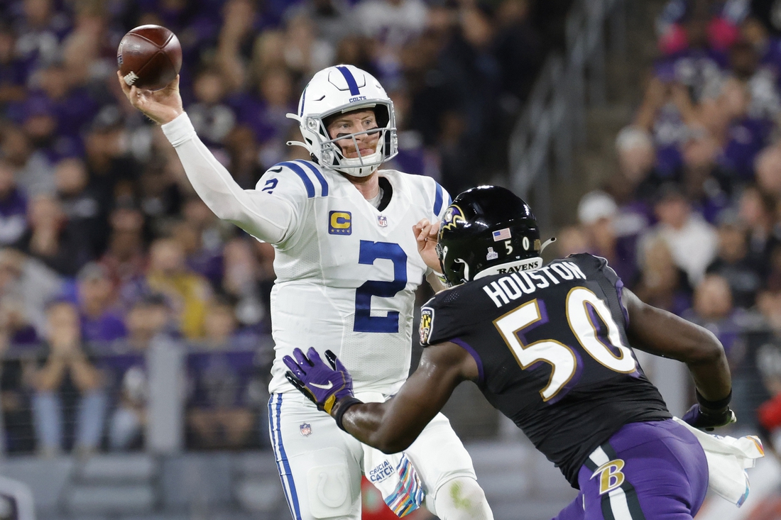 Colts quarterback Carson Wentz completed 25 of 35 passes for a career-high 402 yards and two touchdowns.