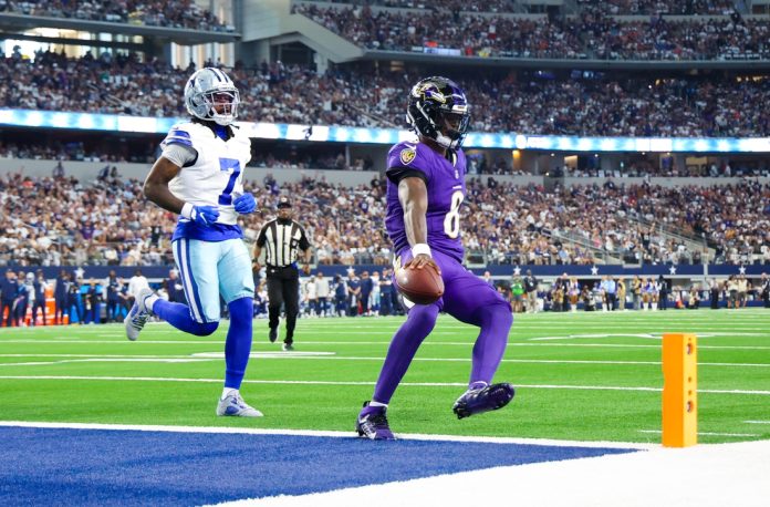 Jackson threw for 182 yards with a touchdown and ran for 87 yards and a score. He became the fifth quarterback in NFL history to reach 30 rushing touchdowns within the first seven years of a career, joining Josh Allen (55), Cam Newton (54), Jalen Hurts (42) and Kordell Stewart (33).
