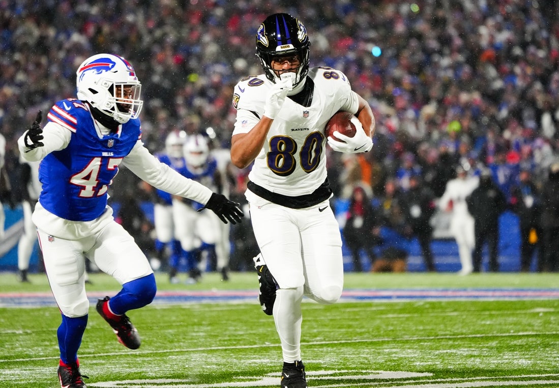 He has 108 catches for 1,261 yards and 14 TDs in 49 career games (19 starts) since being selected by Baltimore in the fourth round of the 2022 NFL Draft out of Coastal Carolina.