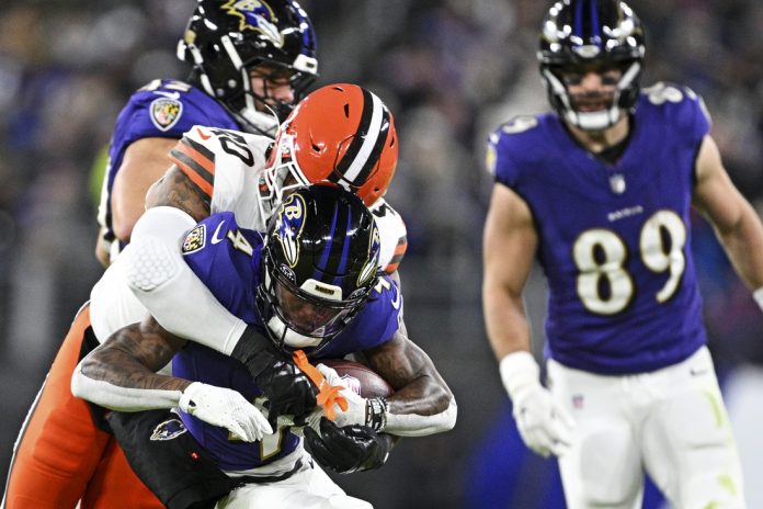 Baltimore leading receiver Zay Flowers was ruled out at halftime of the Ravens’ home game Saturday against the Cleveland Browns after sustaining a knee injury in the second quarter.