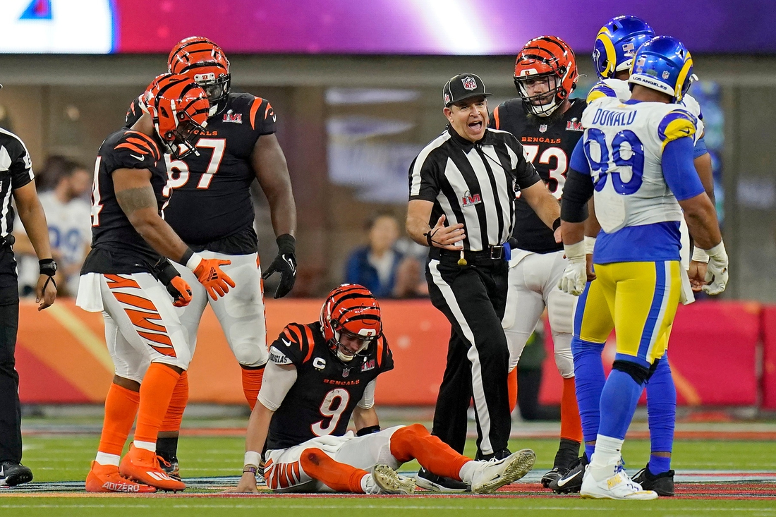 It’s unclear when Burrow sustained the injury, although his leg got caught underneath the pile on one of the seven sacks the Los Angeles Rams recorded during Sunday’s game. Burrow let out a yell on the play during the fourth quarter. He limped to the sideline but remained in the game.