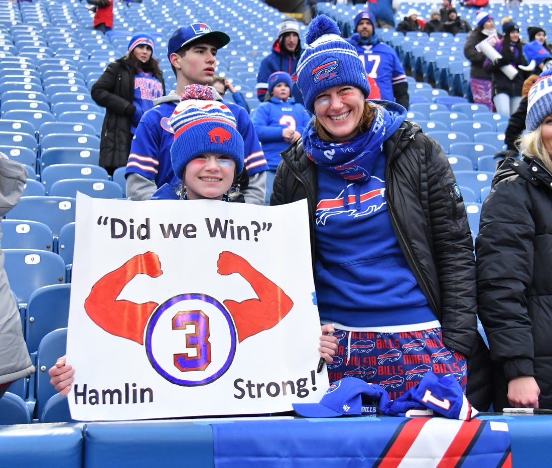 Hamlin went into cardiac arrest during Monday night’s game at Cincinnati and remains hospitalized.