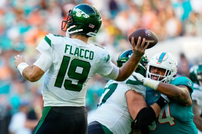 Flacco, 38, has 183 career games (180 starts) under his belt with the Baltimore Ravens (2008-18), Denver Broncos (2019) and Jets (2020-22). He has amassed 42,320 yards through the air with 232 touchdowns and 147 interceptions.