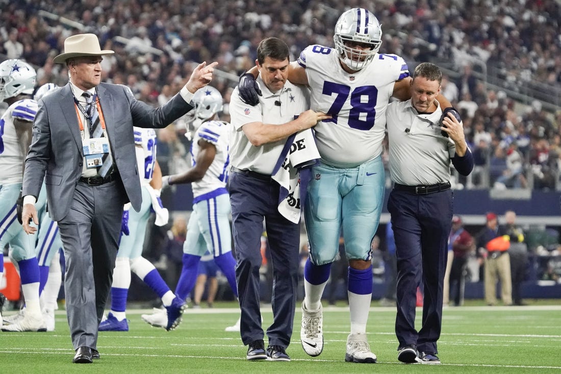 Steele was taken to the locker room just before halftime of the Cowboys’ win on Sunday over the Houston Texans. He appeared to be injured when another lineman rolled on his knee.