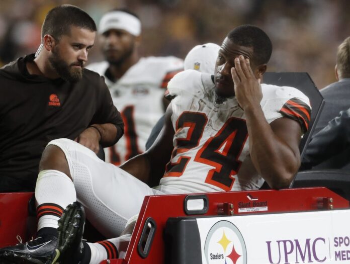 In Cleveland’s 26-22 loss to the host Pittsburgh Steelers on Monday night, Chubb rushed up the middle for a gain of 5 yards with 14:14 left in the second quarter and was in the process of being tackled by Pittsburgh linebacker Cole Holcomb when safety Minkah Fitzpatrick dropped his shoulder and ran directly into Chubb’s left knee.