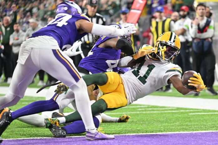 Green Bay receiver Jayden Reed will reportedly have more tests after leaving Sunday night’s win at Minnesota with what the Packers called a chest injury.