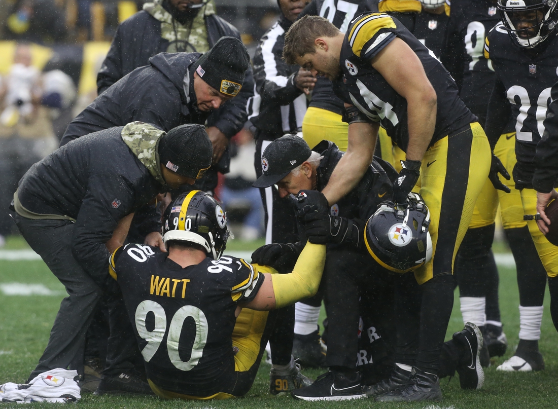 Pittsburgh Steelers outside linebacker T.J. Watt is considered week-to-week with knee and hip injuries sustained in Sunday’s game and is expected to miss some time, NFL Network reported Monday.