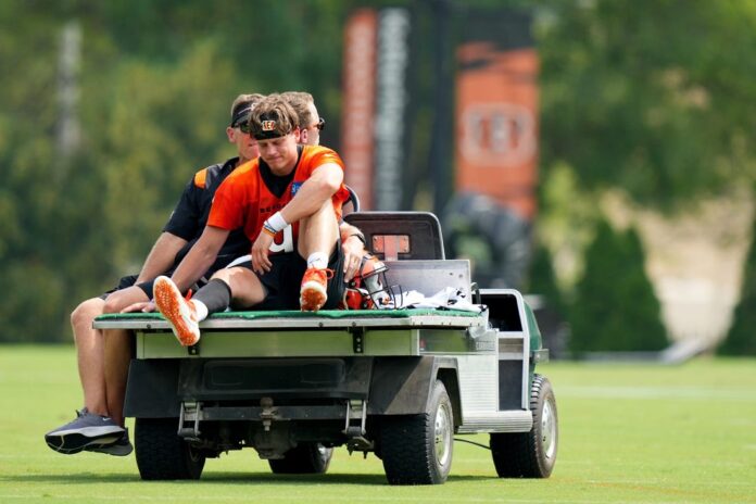 Burrow had to be carted off the field at Bengals training camp with the injury. During a live drill, Burrow used a pump fake, tucked the ball and started to run before coming up limping.