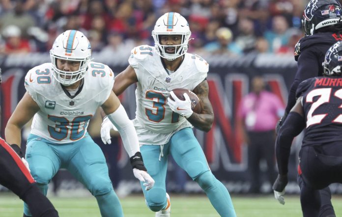 Mostert joined Miami in 2022 and enjoyed his finest season in 2023, rushing for 1,012 yards and leading the NFL with 21 touchdowns from scrimmage. He was selected to the Pro Bowl.