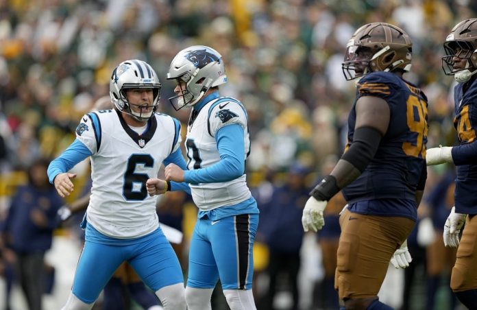 Carolina went in front 13-6 on Dowdle’s 1-yard touchdown run with 2:12 left in the third quarter. Tre’von Moehrig set up the score with a 36-yard interception return to the Green Bay 38. The Panthers were assessed a 15-yard unsportsmanlike conduct penalty on the scoring play, and Fitzgerald missed the long-range extra point.