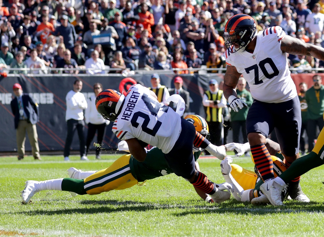 Chicago (3-3) visited the end zone on its opening drive, capitalizing on a Green Bay punt with an eight-play, 80-yard drive that culminated with a 1-yard scoring run from Khalil Herbert, the first touchdown of the rookie’s career.