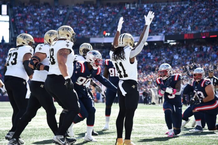 Derek Carr threw two touchdown passes and the New Orleans Saints’ defense forced three turnovers in a 34-0 victory over the New England Patriots on Sunday afternoon in Foxborough, Mass.