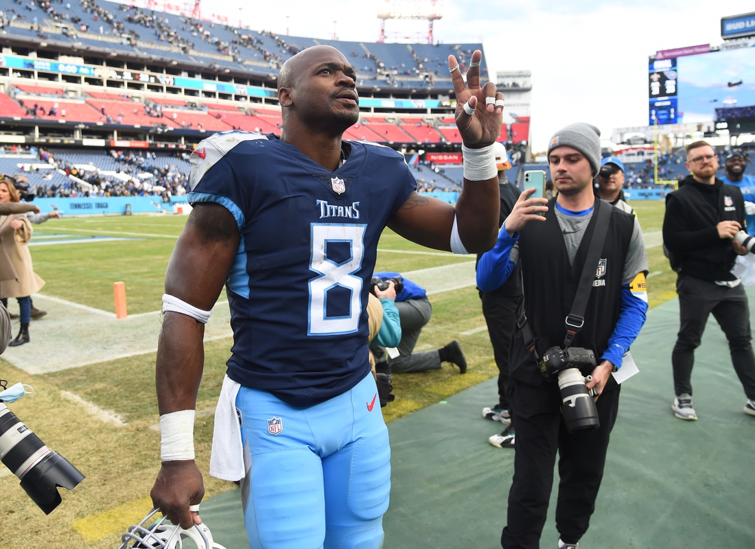 Peterson is the fifth-leading rusher in NFL history with 14,902 yards, including 82 yards on 27 carries for the Titans.