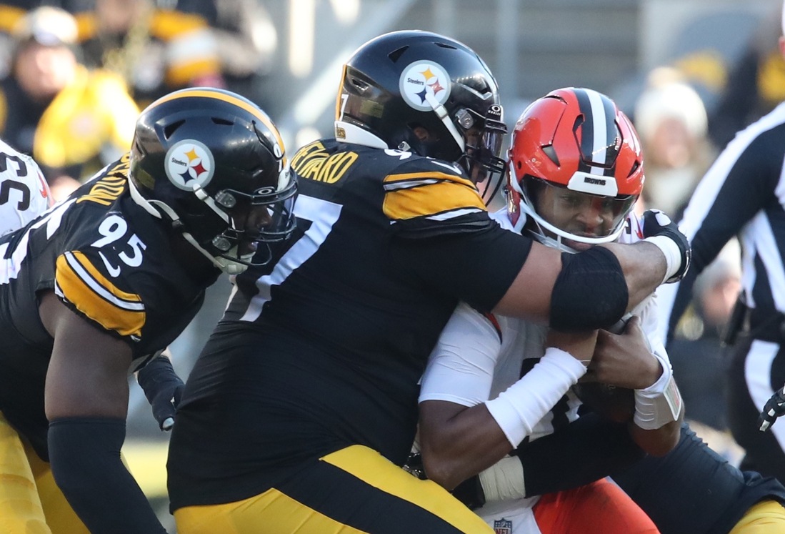 Jameis Winston completed 24 of 41 passes for 212 yards, two touchdowns and two interceptions for the Browns, who dropped their 21st consecutive regular-season road game in Pittsburgh. Cleveland did notch a victory in Pittsburgh in an AFC wild-card playoff game following the 2020 season.