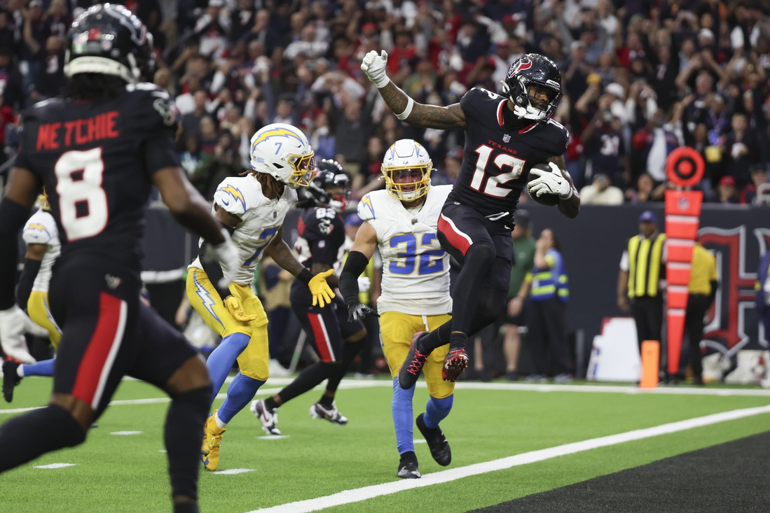 The Chargers scored the first six points, on field goals of 35 and 39 yards by Cameron Dicker in the first 8 1/2 minutes of the game. His second came after a Texans fumble gave Los Angeles a short field.