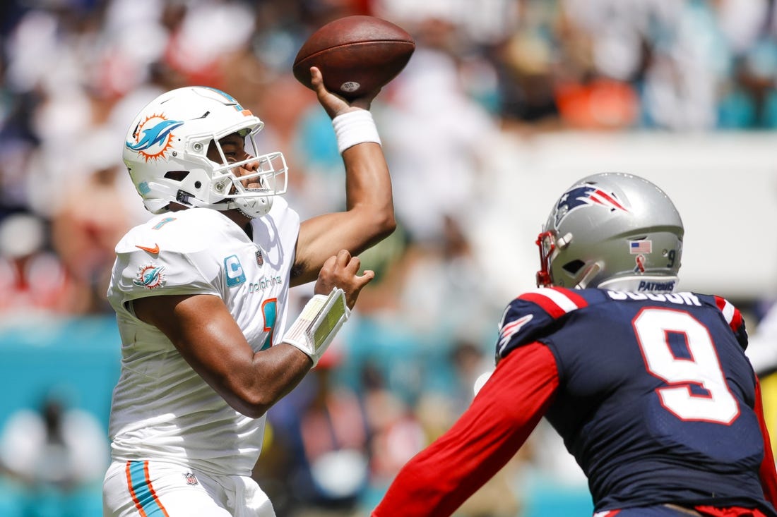 Tua Tagovailoa threw for 270 yards and the Miami defense had a strong showing as the Dolphins defeated the New England Patriots 20-7 on Sunday afternoon in Miami Gardens, Fla., in the season opener for both teams.