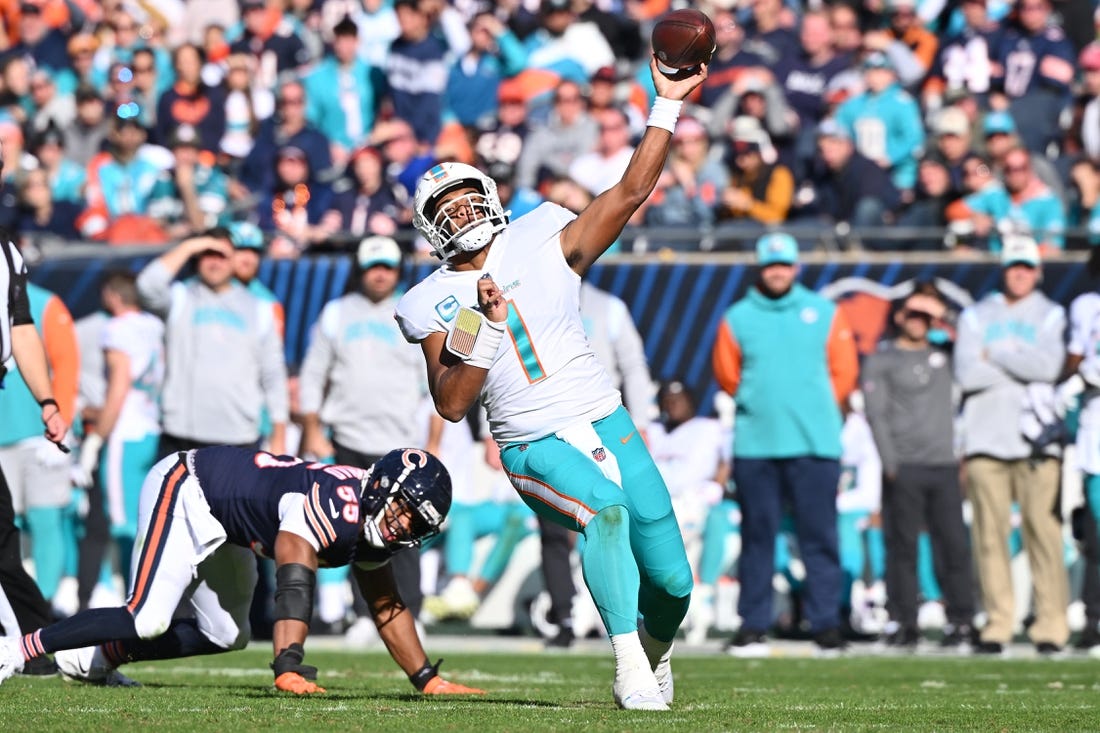Miami (6-3) notched its third straight victory since Tagovailoa returned from a concussion. Despite a standout effort from quarterback Justin Fields — who passed for three touchdowns, ran for another and accounted for 301 yards of total offense — the Bears lost for the fifth time in six games.