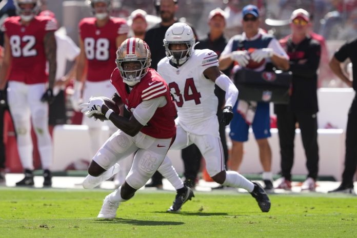Brandon Aiyuk led all receivers with 147 yards on eight receptions for the 49ers.