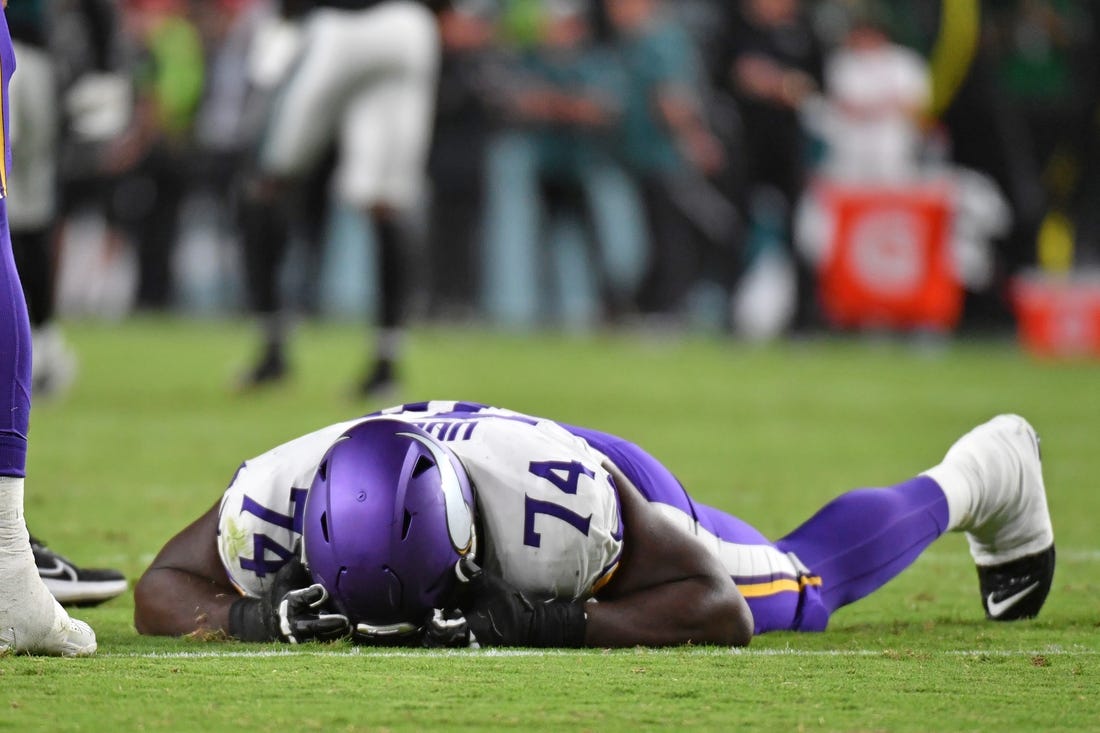 Minnesota Vikings offensive tackle Oli Udoh sustained a season-ending torn quadriceps tendon in Thursday night’s 34-28 loss to the host Philadelphia Eagles.