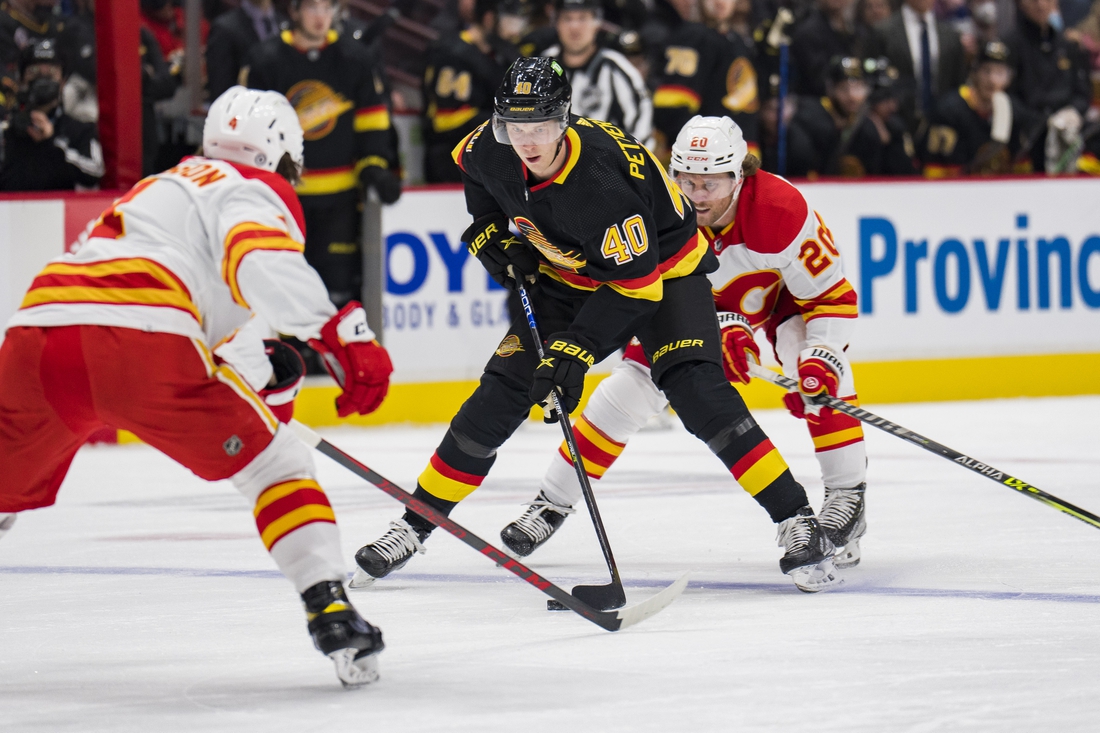 Pettersson started the onslaught with a power-play goal at the 3:42 mark, when he one-timed Hughes’ pass from the right circle past Markstrom’s blocker side.