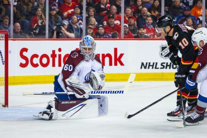 Despite Colorado’s dominance, the Flames actually had the lead at the first intermission. After Rantanaen’s power-play goal opened the scoring at the 2:05 mark, Miromanov — who was acquired by Calgary from the Vegas Golden Knights before the trade deadline — converted a point shot 3:24 into the period for his first goal of the season.
