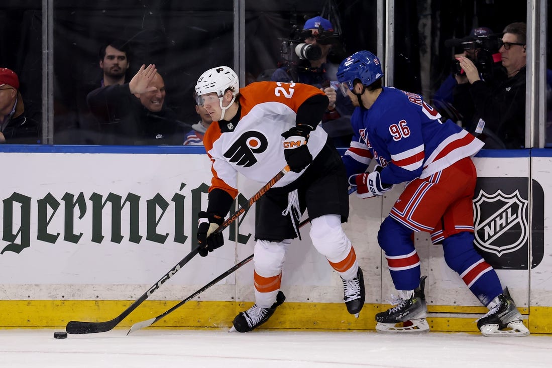 Before all the offense in the third, Laughton and Poehling scored in the opening 11:39 of the second. After the Flyers dominated most of the middle period, Zibanejad netted a power-play goal with 4:32 left off a pass from Panarin.