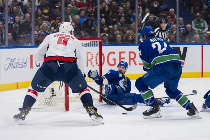 Boeser gave the Capitals a 1-0 lead at 1:11 of the first period. Quinn Hughes skated down into the left circle and his shot was tipped in by Boeser. Hughes boosted his point total to 77 (13 goals, 64 assists), breaking his own record for most points in a season by a Canucks defenseman.