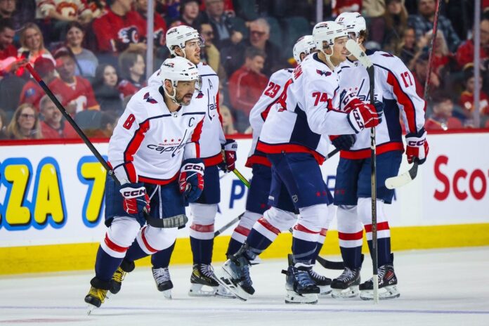 Alex Ovechkin scored twice and the visiting Washington Capitals rode a three-goal second period to a 5-2 victory over the Calgary Flames on Monday that lifted them into the Eastern Conference’s second wild-card position.