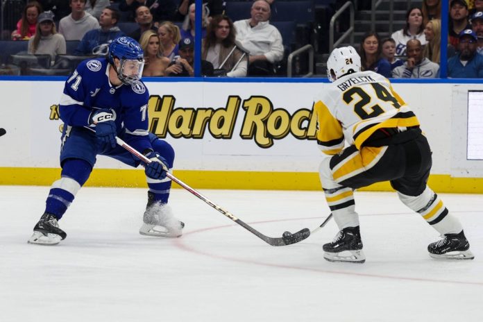 The Lightning (41-25-5, 87 points) blew away the Penguins with a four-goal onslaught in the first period to climb to 25-8-2 at home and 13-2-5 against Metropolitan Division opponents.