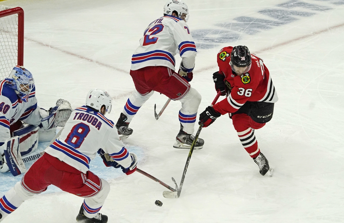 The Blackhawks benefited from winning another draw to tally their next goal. Collecting a rebound of a blocked shot, Dach beat Rangers goaltender Alexandar Georgiev to snap a 17-game stretch without a goal.