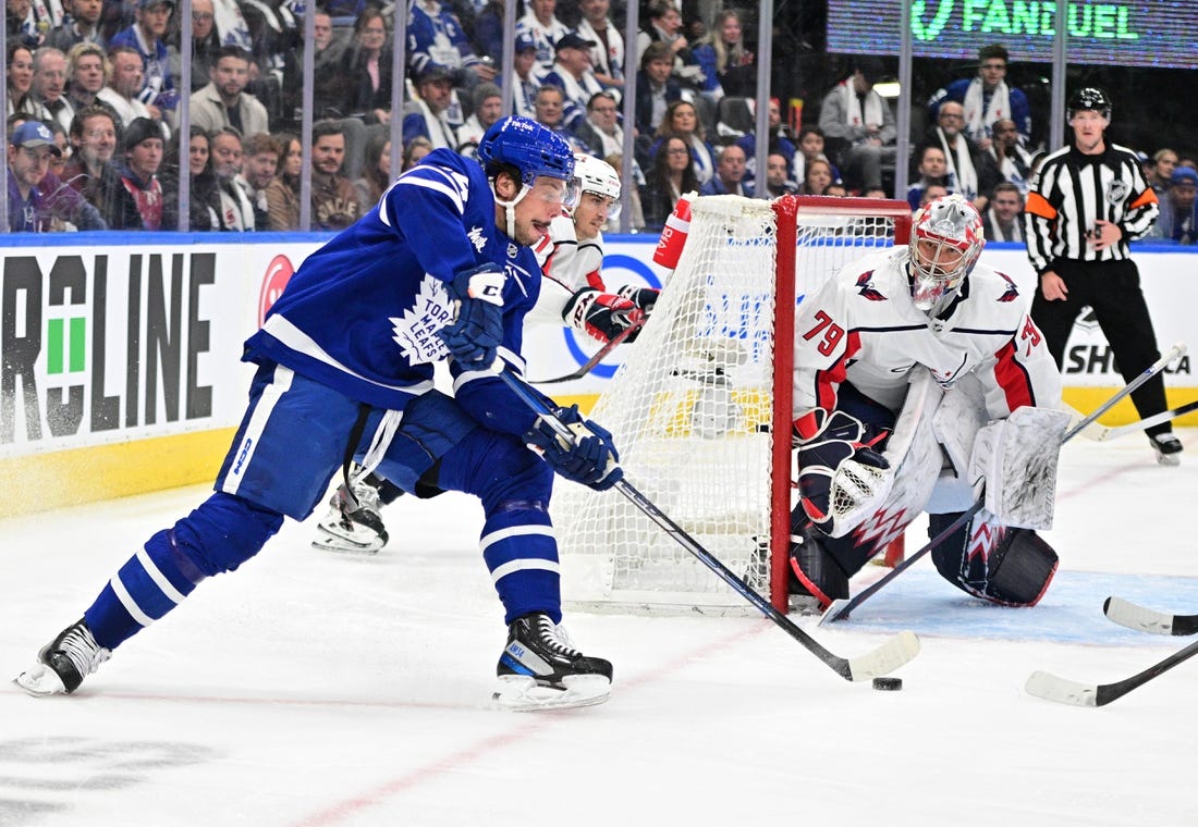 John Tavares and Calle Jarnkrok also scored, and Morgan Rielly added two assists for the Maple Leafs in their home opener. Former Capitals goaltender Ilya Samsonov stopped 24 shots in his Maple Leafs debut.