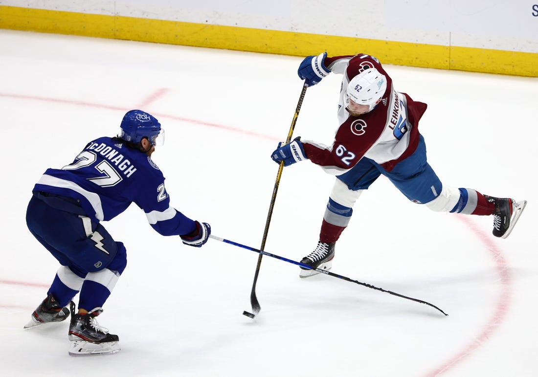 Lehkonen, who hit the post late in the first period, gave Colorado a 2-1 lead with 7:32 remaining in the second. The puck banked off the leg of Tampa Bay defenseman Zach Bogosian and right to Lehkonen, who sent a shot over the glove of Vasilevskiy for his eighth goal of the playoffs.