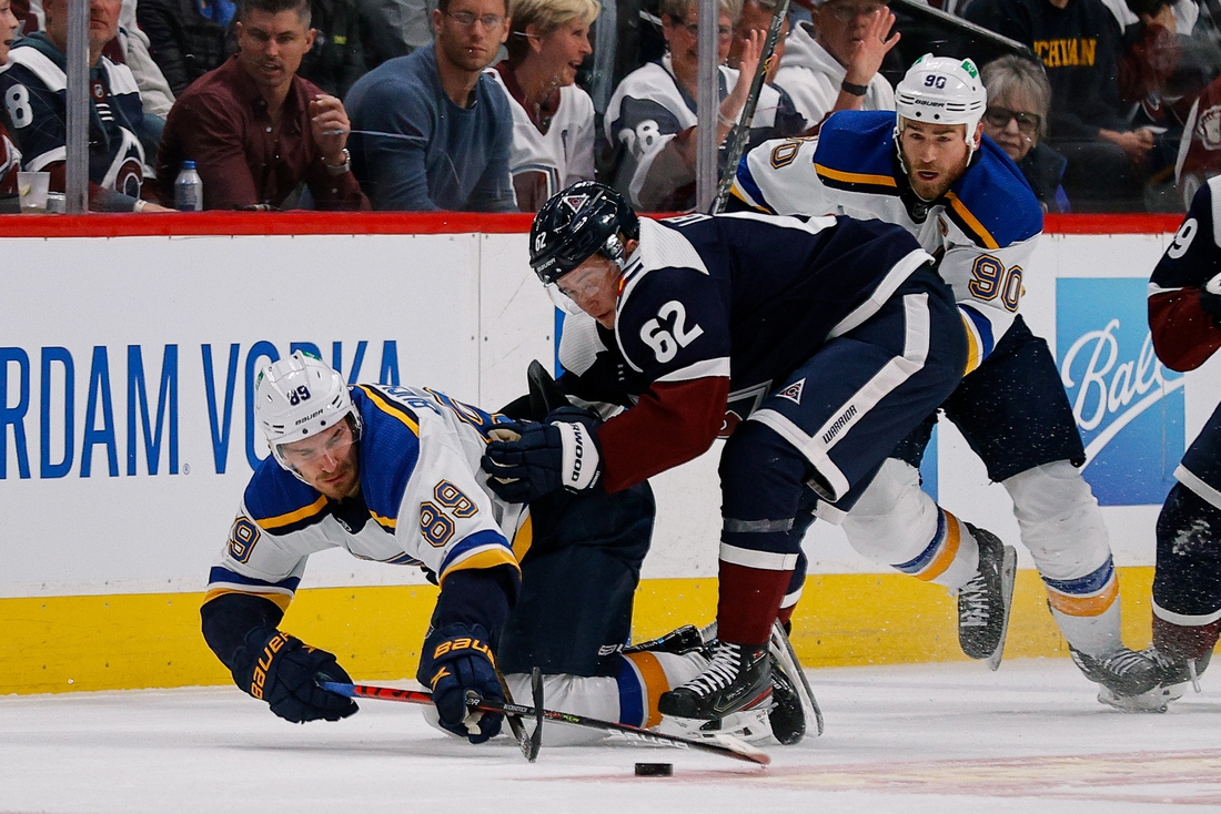 The Avalanche went ahead 3-0 when they got the puck off a faceoff and worked it around to Manson at the top of the zone. His sixth goal of the season went over Binnington’s shoulder at 8:03.