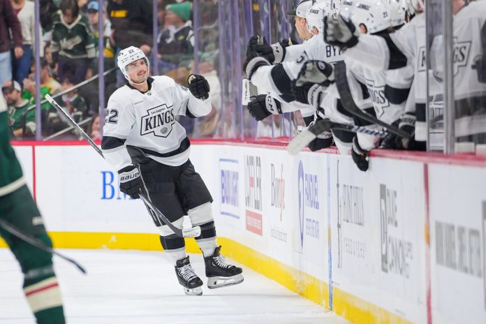 Los Angeles made it 4-1 on Byfield’s first goal of the season with 5:48 remaining in the third period. He scored on a deflection from the low slot.