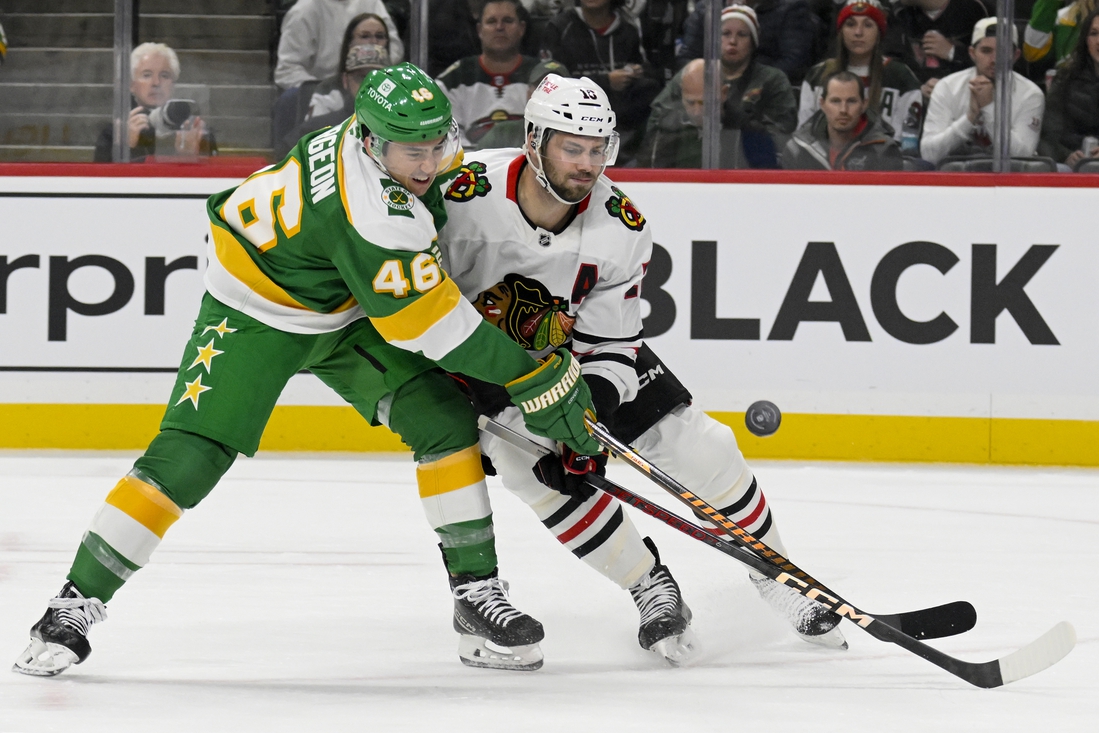 Former Wild center Ryan Donato scored both goals for the Blackhawks, including a power-play tally in the second period. It was the second two-goal game of the season for Chicago’s leading goal-scorer, who has 10 in 21 games after never recording more than 16 in his previous eight seasons.