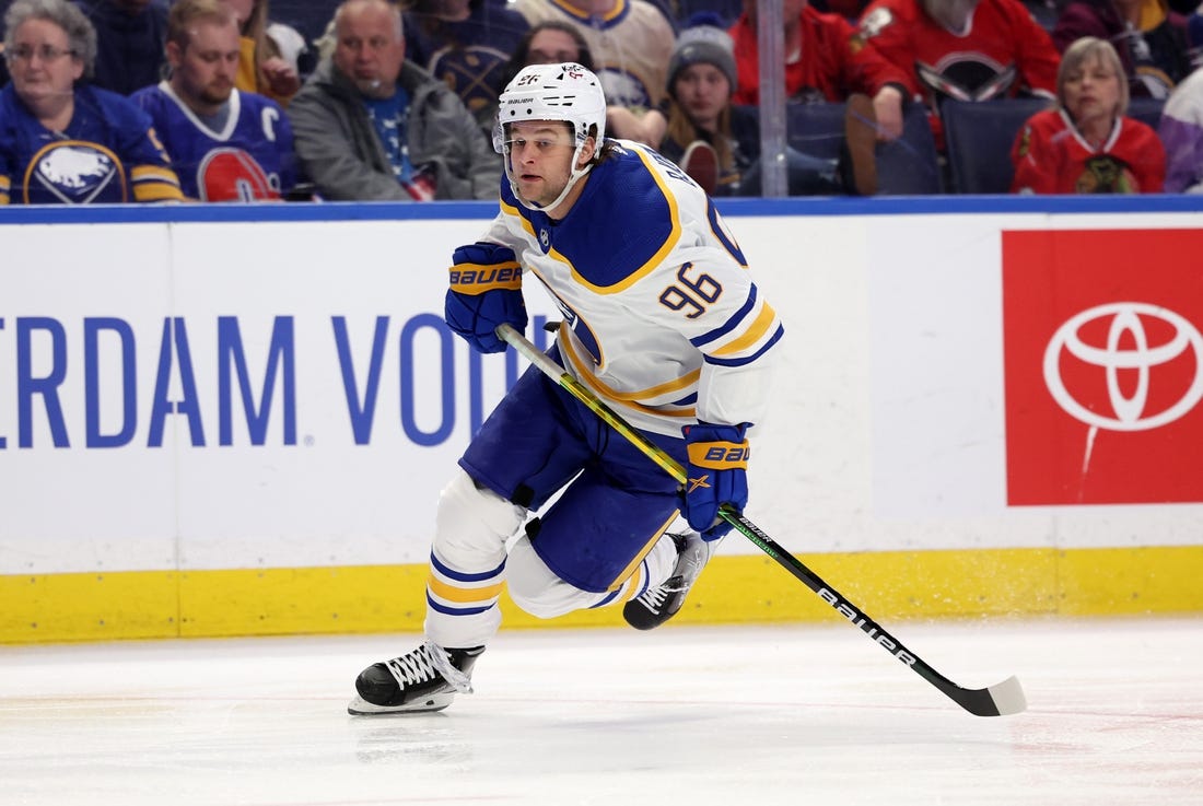 The Chicago Blackhawks acquired forward Anders Bjork from the Buffalo Sabres on Thursday in exchange for future considerations.
