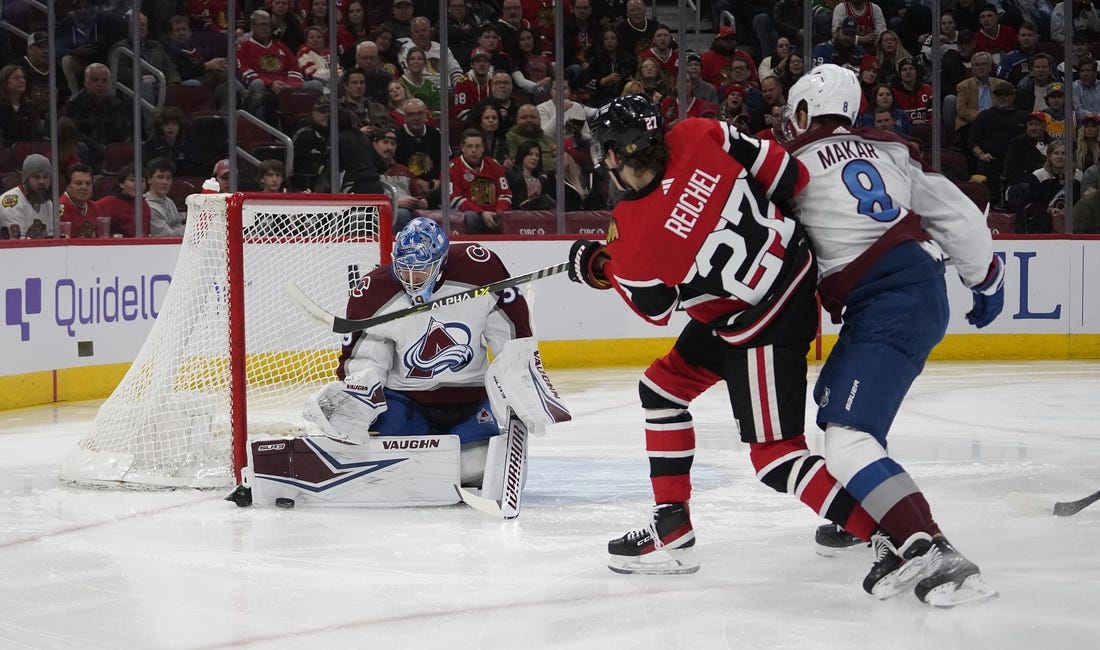 Colorado’s would-be game-tying goal from Alex Newhook with 4:51 remaining was overturned for goaltender interference following a Chicago challenge. The Avalanche have lost seven of eight.