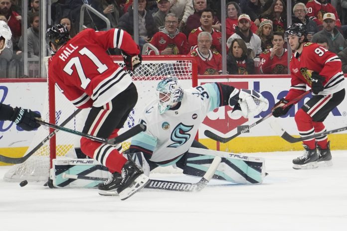 The Kraken have lost three in a row and 8 of 12 (4-7-1). Seattle was 0-for-3 on the power play as the Blackhawks stretched their streak to 31 straight successful penalty kills.